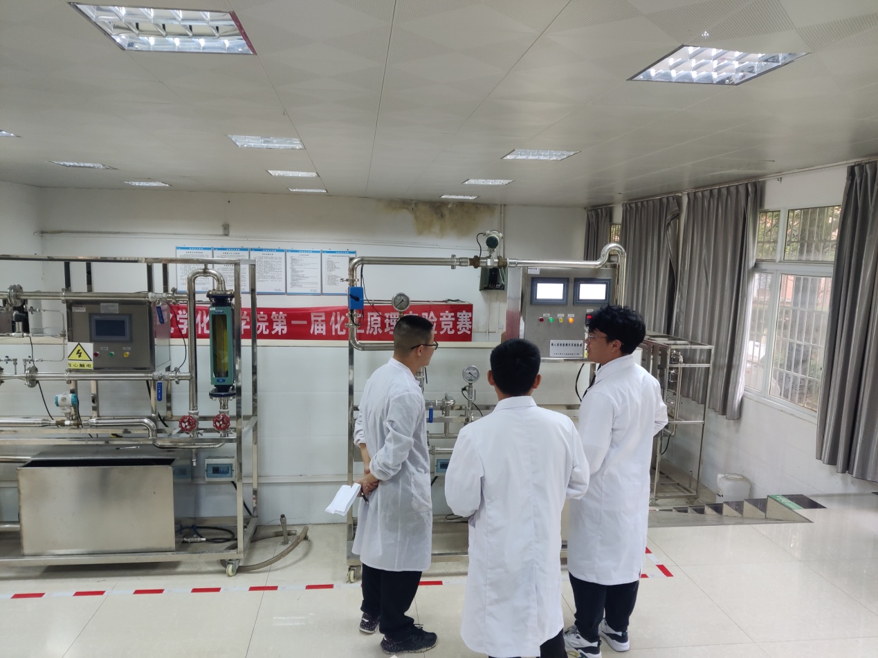 2021年6月10日9:00-12:00,化学化工学院在化工实验室举办了“化学化工学院第一届化工原理实验竞赛”。2019级化学工程与工艺班全体同学作为参赛选手参加比赛,化学化工学院副院长赵荣飞、实验科科长程劲松老师全程观摩指导。本次化工原理实验竞赛的参赛选手以团队形式参加,每个团队由2名同学组队,一人负责讲解实验原理与实验注意事项,一人负责实验操作。担任此次实验竞赛的评委主要由化工教研室主任张秋云、化工原理实验老师陈晓淼与马娟老师组成。