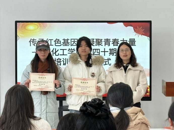 为深入学习贯彻习近平新时代中国特色社会主义思想,强化入党积极分子和发展对象的党性修养,提升思想觉悟,坚定理想信念,12月5日中午12:30,化学化工学院在毓秀学生社区活动服务中心举办了第40期入党积极分子与发展对象培训班结业仪式。学生党支部书记马娟出席了本次结业仪式。参加结业仪式的还有本期培训班的全体学员。