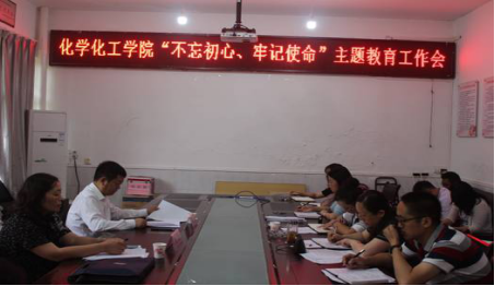 按照中央、省委、市委和学校党委“不忘初心、牢记使命”主题教育的部署和要求,2019年9月17日上午9:00,化学化工学院在会议室召开了“不忘初心、牢记使命”主题教育工作会。参加本次会议的有安顺学院党委副书记、学校党委第三巡回指导组组长陶文彩同志;安顺学院宣传部部长、学校党委第三巡回指导组副组长殷红敏同志;化学化工学院党委委员和全体教师党员。会议由化学化工学院党委副书记、院长施渺筱同志主持。