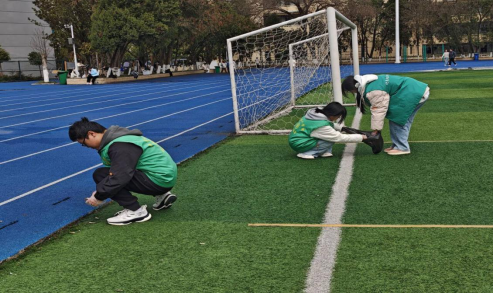 (2025年3月16日14:00-15:00志愿者们认真清理足球场垃圾)