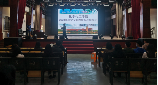 2022年03月1 8日上午,化学化工学院在学校礼堂举行了2022届化学教育实习总结会。化学化工学院院长杨莉莉、书记喻辉、学院参加实习工作的赵荣飞老师、曹彬老师、王胜碧老师、李文秀老师、任琴会老师等,2022届化学班参加了此次总结大会。会议由赵荣飞老师主持。