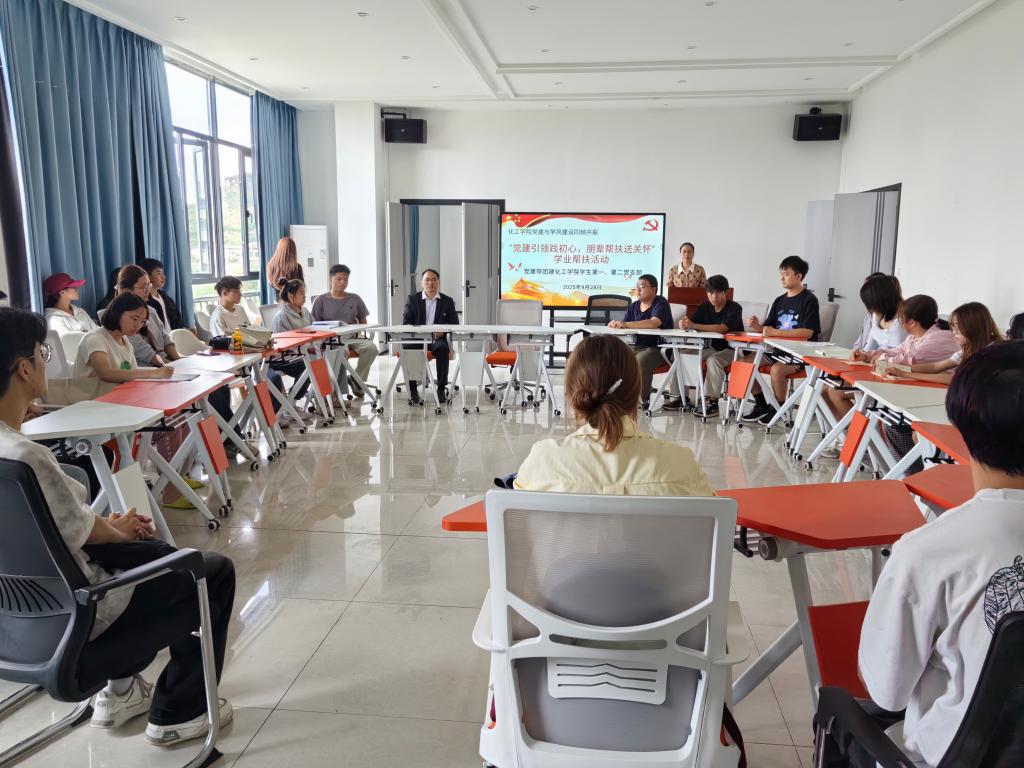 为不断推进我院学风建设工作走深走实,强化“以学生为中心”的育人理念,以党建带团建为引领,充分发挥学生党员及优秀学生的先锋模范作用,旨在通过朋辈互助形式,助力学困生提升学业能力,营造积极向上的校园学习氛围。9月28日中午12:30,化学化工学院在毓秀一站式学生服务中心召开“党建引领践初心,朋辈帮扶送关怀”学业帮扶活动。我院专职副书记韦复华与学生支部书记马娟出席会议,2023级学生党员、2023级与2024级学业预警同学等40余人参加。本次活动由马娟主持。