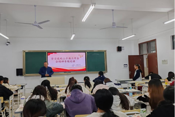 为深入学习贯彻党的二十届三中全会精神,教育引导学生支部成员在学思践悟中凝聚奋进力量。2024年11月7日在顺理楼532教室,化学化工学院党委书记周松同志给我院第38期党校学员开展学习党的二十届三中全会精神专题党课。