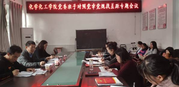 2019年11月11日下午,我院开展党委班子“不忘初心,牢记使命”主题教育对照党章党规找差距专题会,安顺学院党委副书记陶文彩,党委宣传部部长殷红敏教授,党委组织部副部长樊亚,化学化工学院党委书记杨莉莉,院长施渺筱,副院长张红霞、赵荣飞,在校的党员教师共15人参加会议。会议由化学化工院党委书记杨莉莉同志主持。