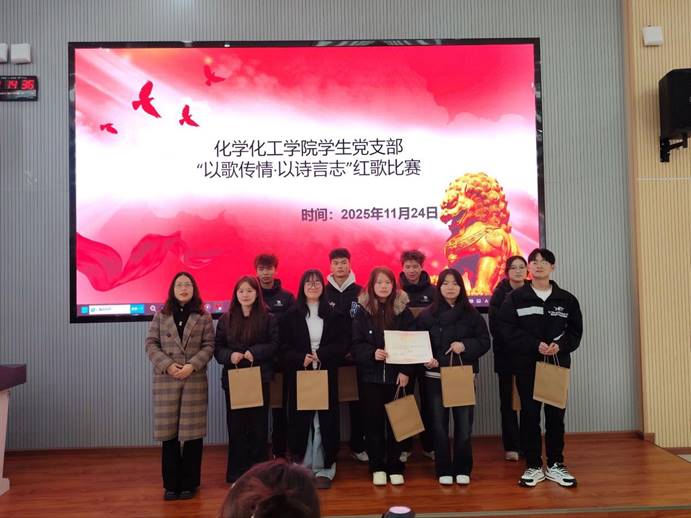 为传承红色基因、弘扬爱国主义精神与革命精神,化学化工学院学生党支部于2025年11月24日在顺理楼128举办“以歌传情·以诗言志”红歌比赛。支部的学生党员、发展对象和积极分子踊跃参加,大家用嘹亮的歌声和铿锵的朗诵唱响了属于新时代化工学子的青春之音。
