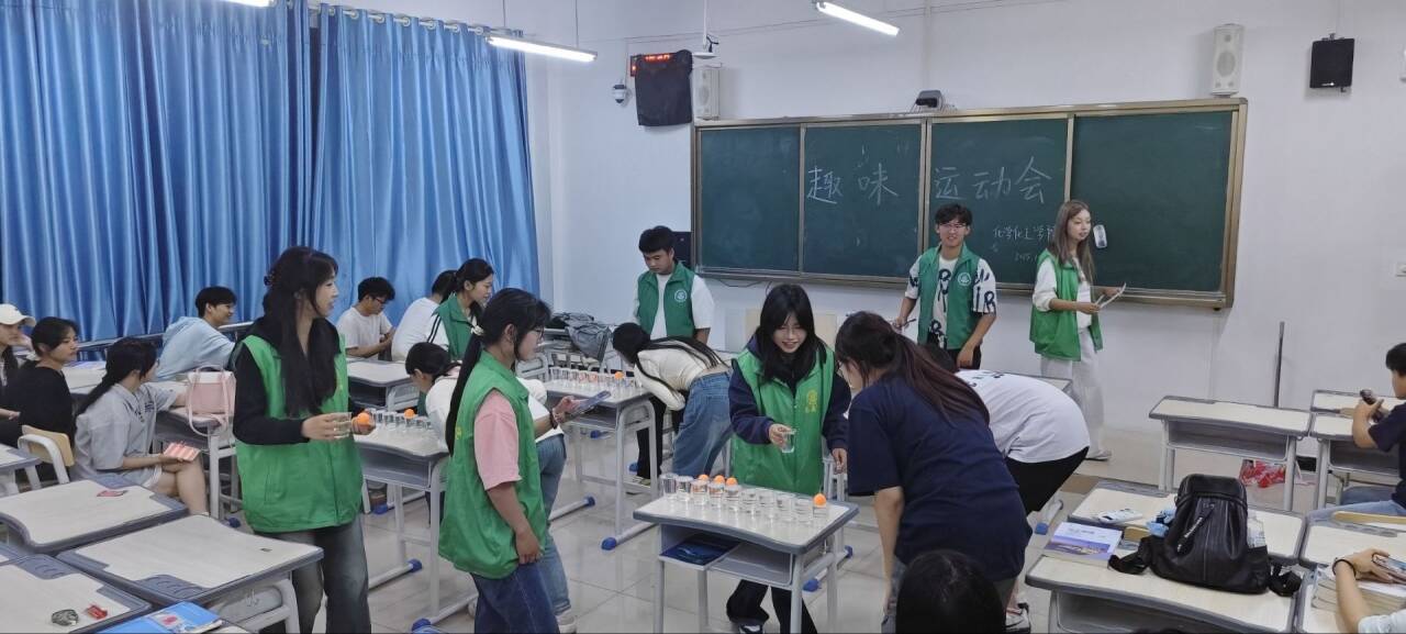 运动会筹备阶段,工作人员巧思布局赛场:将魔方、乒乓球四子棋、你画我猜益智项目安置于顺理楼教室中,铺陈出一片静谧的脑力角逐天地;把跳绳、跳远、拔河等竞技项目落位在足球场草坪上,勾勒出活力迸发的运动图景,一幅欢乐与协作的温馨画面。