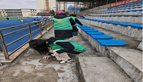 (2025年3月16日15:00-15:30志愿者对观众席垃圾进行处理)