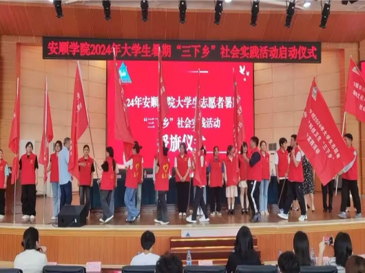 2024年7月9日,在安顺学院学术报告厅开启安顺学院2024年大学生暑期“三下乡”社会实践活动启动仪式并进行授旗仪式,目的是让大学生们要深入社会,到基层去、到群众中去、到乡村振兴的第一线去、到条件艰苦的环境中去,使我们在实践的大课堂中了解社会,正确认识国情,不断增强人民群众的意识和观念,培育自觉为人民服务的责任意识,进一步明确当代青年学生所肩负的历史使命,牢固树立国家主人翁的责任感和使命感。我们大学生可以通过自己的切身实践,去知晓民情和国情,去思考、理解和拥护党的路线、方针政策。
