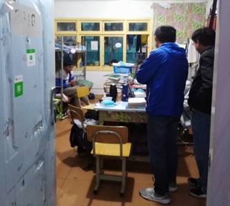 赵院长带领各老师对各班自习课情况进行考察,关注学生的近期学习状态,并对同学们给予学习上的解惑和鼓励。接着对宿舍的卫生、安全隐患等进行检查,一方面关心同学们的生活情况,给同学们最真切的慰问,另一方面再三嘱咐同学们要提高防火防盗意识,不要在寝室内使用大功率用电器等。