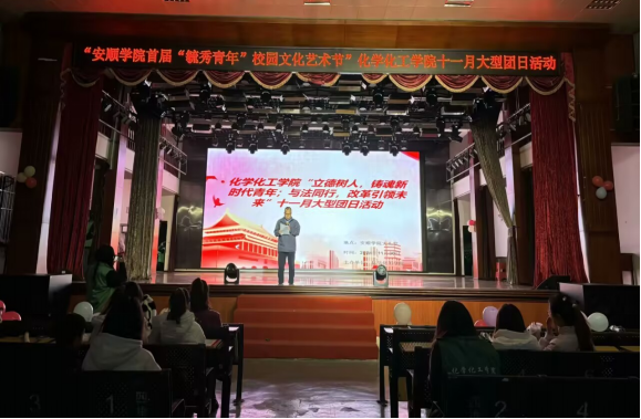 为了凝聚青年力量,增强青年对团组织的归属感和认同感,学习党团的理论知识、方针政策,提高团员、群众的思想觉悟。2024年11月30日晚上,化学化工学院在安顺学院老校区大礼堂举办“化学化工学院十一月大型团日活动”,旨在增强同学们之间的凝聚力与活跃校园气氛。本次活动由院学生会举办,同时诚邀陈红亮副院长、陈晓淼老师共同莅临本次活动。