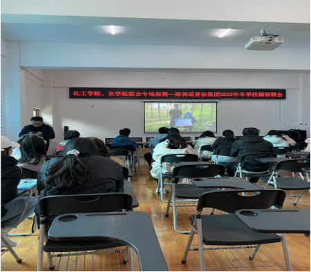 2021年12月7日下午两点,在安顺学院招聘大厅,安顺学院化学化工学院和农学院联合举办了深圳诺谱信集团专场招聘会。化学化工学院就业专干柯杨老师与公司两位负责人员及化学化工学院、农学院2018级的毕业生业分批参加了本次招聘会。
