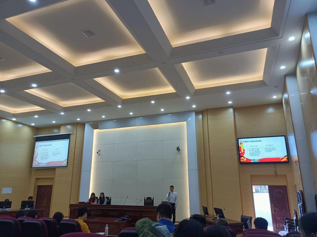 2021年5月8日从12:30-16:00,化学化工学院学生党支部在安顺学院模拟法庭举办了2021年“学党史、颂党恩”微型党课比赛。参加本次比赛的选手主要来自学生党支部的发展对象与中共预备党员。观摩比赛的成员主要是学生支部所有积极分子。本次微型党课比赛由教师组评委与学生组评委共同组成。评委主要是学生党支部书记马娟同志、专职组织员陈晓淼同志及部分2017级学生党员同志。