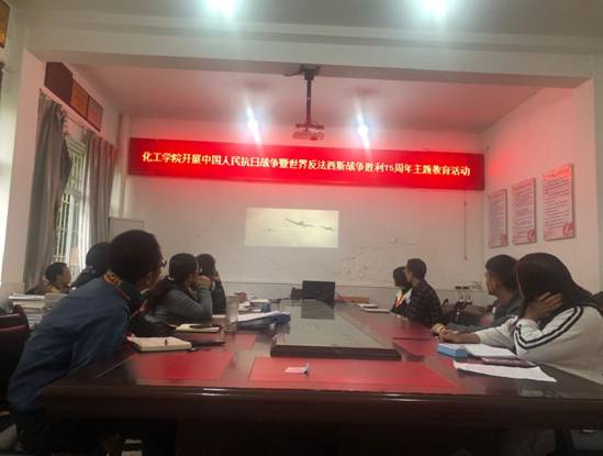 2020年9月14日下午,化学化工学院组织开展中国人民抗日战争暨世界反法西斯战争胜利75周年群众性教育活动,全体教师集中观看中国人民抗战史的相关影片。