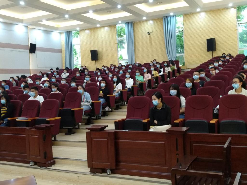 2020年5月11日早上8:30在模拟法庭举行化学化工学院2019-2020学年度第二学期毕业班开学第一课,参加此次会议的有化学化工学院党委书记杨莉莉、化学化工学院赵荣飞副院长、辅导员、毕业班班主任以及返校的全体毕业生。