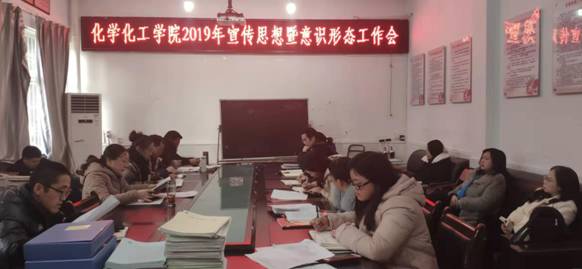 为认真贯彻落实党委(党组)意识形态工作责任制及中央和省委、省委教育工委、市委关于“不忘初心、牢记使命”主题教育的有关要求,进一步学习贯彻党的十九届四中全会精神。2019年12月16日下午,安顺学院化学化工学院在会议室召开了“化学化工学院2019年宣传思想暨意识形态工作会”,会议由杨莉莉书记主持。化学化工学院全体教师参加了会议。
