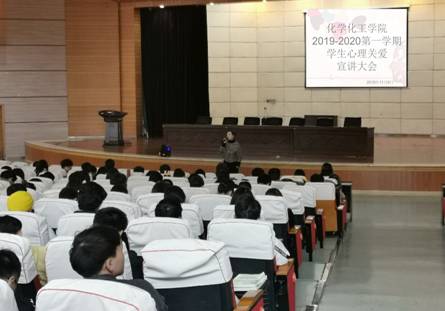当前,大学生的心理健康问题普遍存在,为引导学生了解排除烦恼的方法,提高广大师生的心理健康意识,我院于2019年11月6日中午12:00在学术报告厅召开了2019-2020学年第一学期学生心理关爱宣讲大会。参加此次宣讲会的有化学化工学院党委书记杨莉莉老师,施渺筱院长,赵荣飞副院长和化学化工学院辅导员老师、部分班主任及化学化工学院全体学生。
