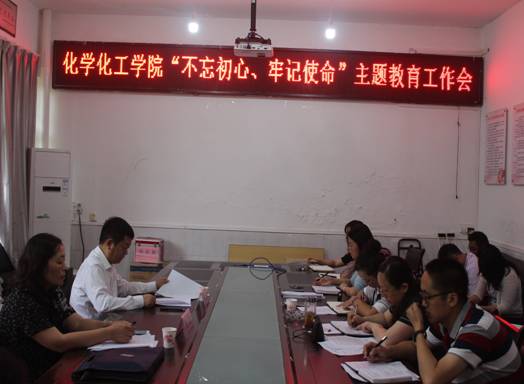 按照中央、省委、市委和学校党委“不忘初心、牢记使命”主题教育的部署和要求,2019年9月17日上午9:00,化学化工学院在会议室召开了“不忘初心、牢记使命”主题教育工作会。参加本次会议的有安顺学院党委副书记、学校党委第三巡回指导组组长陶文彩同志;安顺学院宣传部部长、学校党委第三巡回指导组副组长殷红敏同志;化学化工学院党委委员和全体教师党员。会议由化学化工学院党委副书记、院长施渺筱同志主持。