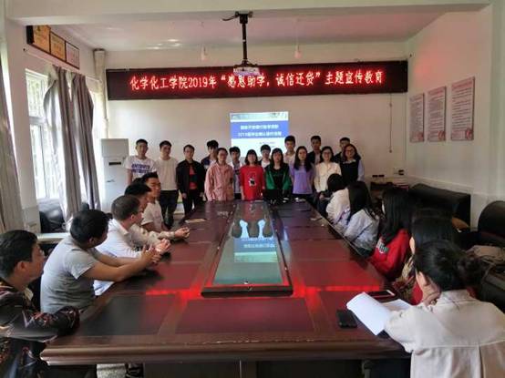 为切实做好化学化工学院2019届毕业生生源地贷款学生的诚信还贷教育工作,帮助贷款学生树立诚信还贷意识,4月11日下午,化学化工学院在我院会议室举办了“感恩助学、诚信还贷”主题宣传教育讲座。该讲座主讲人为辅导员马娟老师,2019届50余名贷款毕业生参加了此次主题教育讲座。