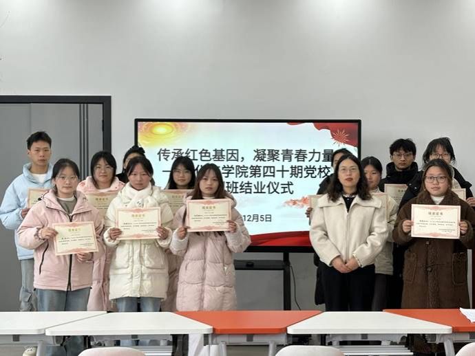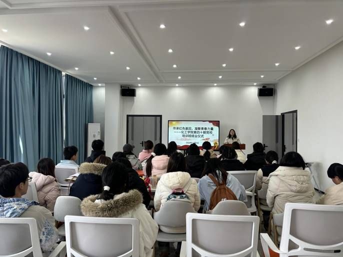 为深入学习贯彻习近平新时代中国特色社会主义思想,强化入党积极分子和发展对象的党性修养,提升思想觉悟,坚定理想信念,12月5日中午12:30,化学化工学院在毓秀学生社区活动服务中心举办了第40期入党积极分子与发展对象培训班结业仪式。学生党支部书记马娟出席了本次结业仪式。参加结业仪式的还有本期培训班的全体学员。