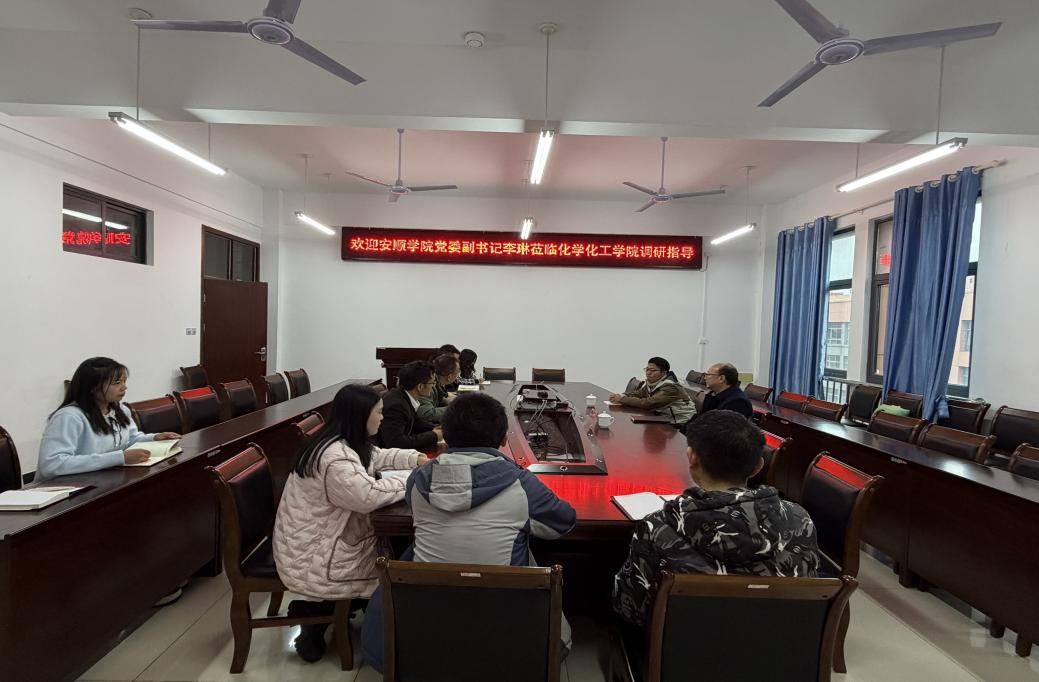 2025年11月7日上午,安顺学院党委副书记李琳同志莅临化学化工学院调研指导工作,并针对化学化工学院领导班子调整过渡期的工作提出明确要求。此次调研正值学院干部调整的关键节点,旨在凝聚共识、稳定发展。