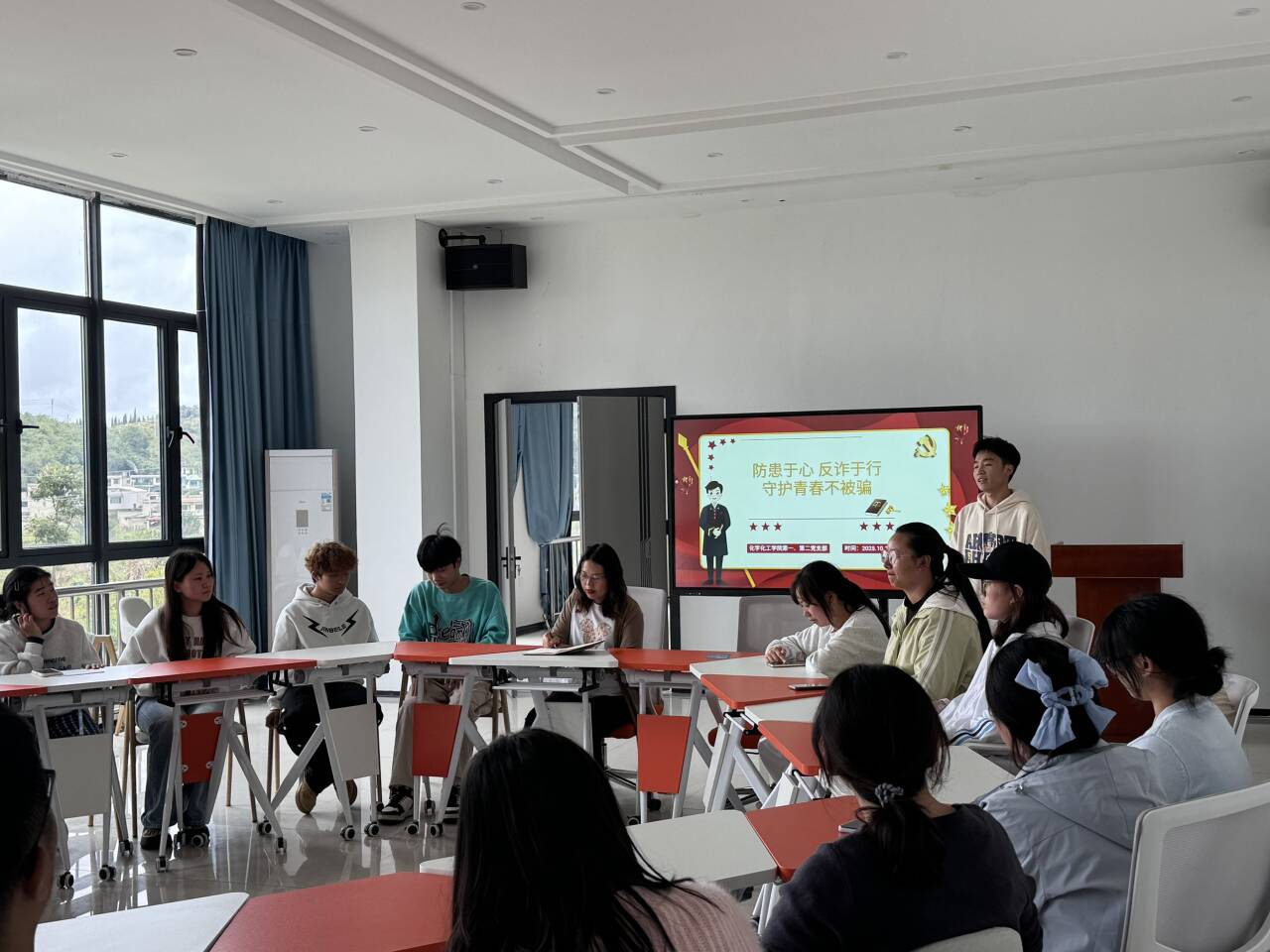 为筑牢校园安全防线,密织青春防护网,切实保护学生免受财产及人身侵害,10月16日,化学化工学院学生科科长马娟老师组织我院各班学生代表在毓秀一站式学生服务中心开展了“防患于心反诈于行,守护青春不被骗”主题反诈宣传教育活动。