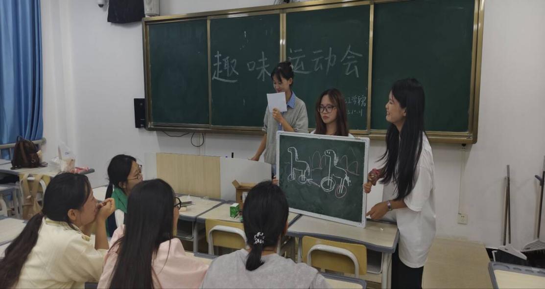 10月11日,“你画我猜”的比赛也开始了。五人一组的同学们围站在画板旁,分工明确。负责画画的同学手忙脚乱又创意十足,猜词的队友们则急得抓耳挠腮,时不时爆出可爱的错误答案。整个过程笑声不断,完全没有比赛的紧张感,更像是一场充满乐趣的集体游戏。